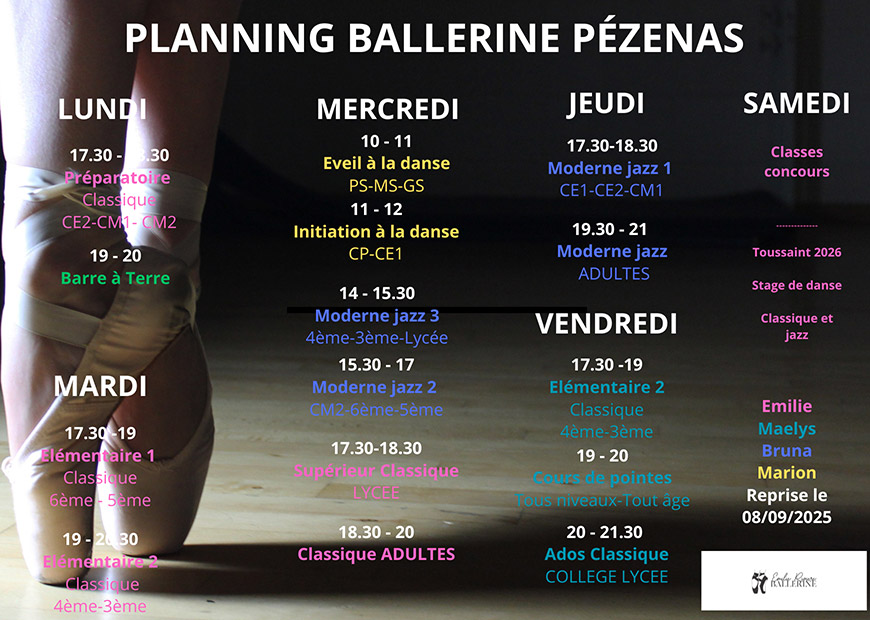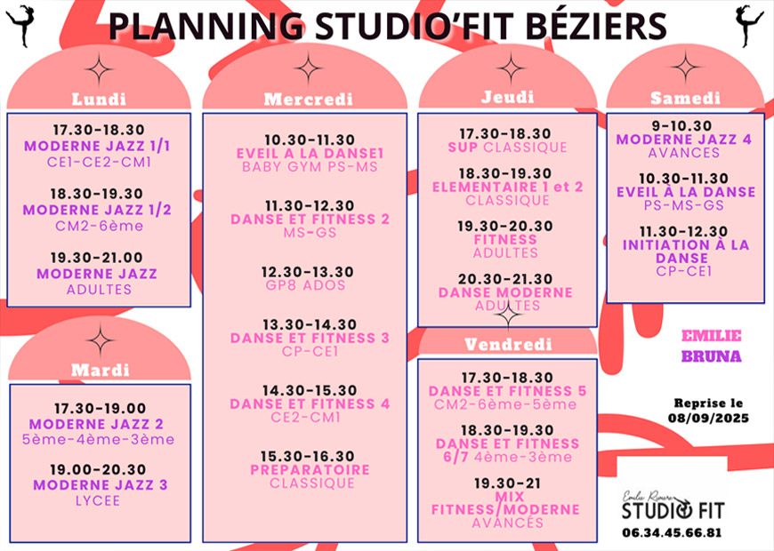 Cours de Danse et Fitness pour Enfants, Ados et Adultes - Planning Saison 2025/2026: